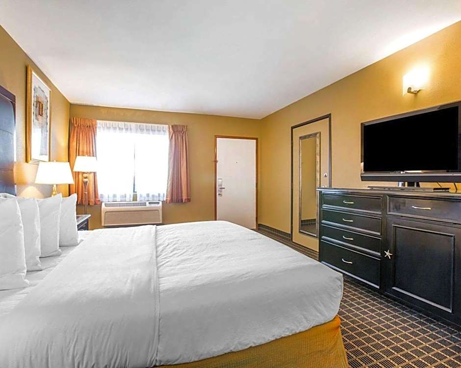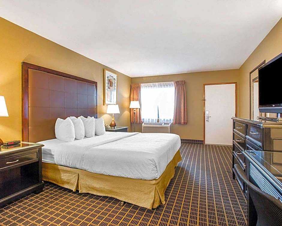 This queen room features an in-room coffee machine, a work desk and a TV with HBO film channels.