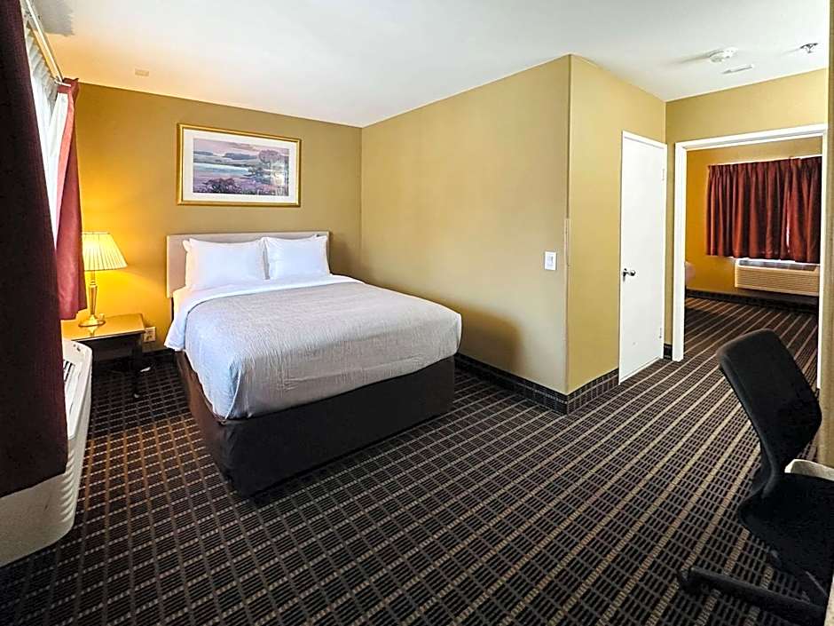 This queen room features an in-room coffee machine, a work desk and a TV with HBO film channels.